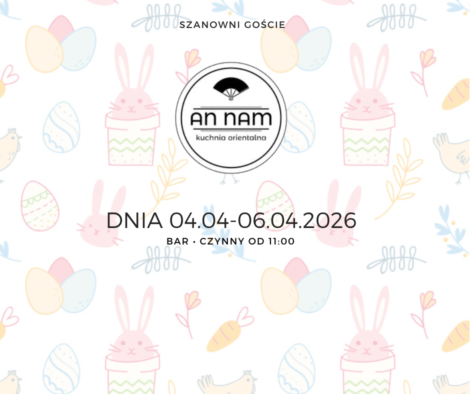 Dnia 05.04.2026 (Niedziela Wielkanocna) oraz 06.04.2026 (Poniedziałek Wielkanocny) nasz lokal będzie otwarty od godziny 11:00